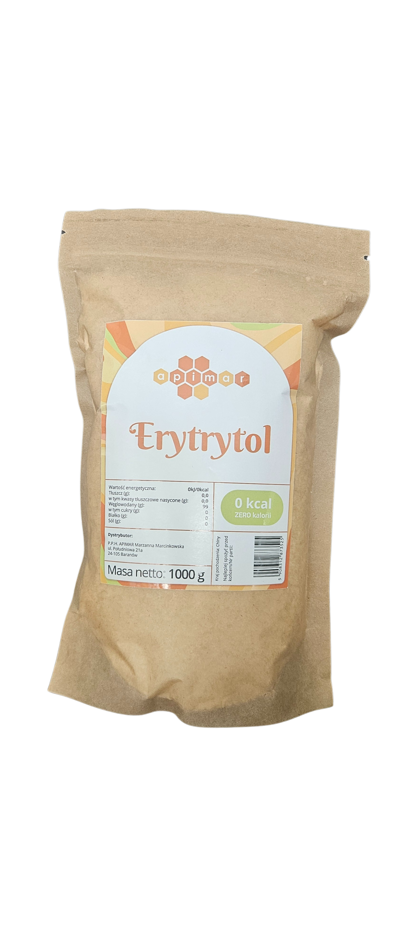Erytrytol to naturalny słodzik z grupy alkoholi cukrowych (poliole), który występuje m.in. w owocach i warzywach. Charakteryzuje się czystym, lekko chłodzącym smakiem, zbliżonym do cukru, ale zawiera 0 kcal i ma indeks glikemiczny IG = 0, dzięki czemu nie wpływa na poziom glukozy we krwi.